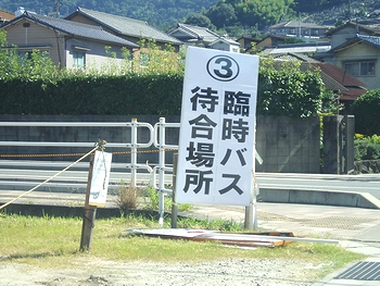 早々と我が家近くの一角に、花火大会当日の臨時バス待合所の立て看板が(^.-)☆
