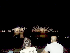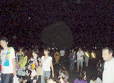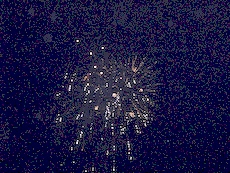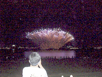 近いからいつでも出かけられる…とノンビリ構えていましたら、なんだかんだと雑用に追われ、出かけましたのはP.M.7:30を過ぎていましたでしょうか(^-^)河川敷に到着し間もなく打ち上げ開始。