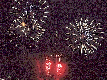 それにしましても、夏の風物詩の“花火”が途中で中止とは本当に残念でしたネ。挿入の画像は、芦田川での花火大会での一コマなんですけど、相変わらずGONsanは花火を撮りますのは下手ですネ(^-^;