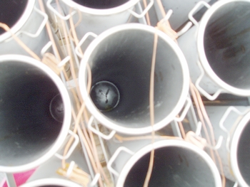 花火大会の前日に筒の中を覗いて見たかったのですけど、花火師の方に“危険だからダメ!!”と拒否されましたから花火の玉が込められていますのは見る事は出来ませんでした。