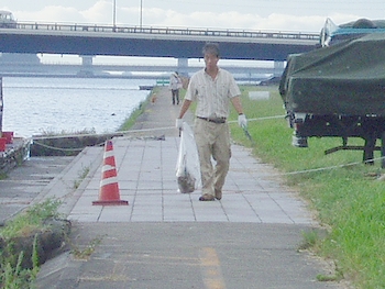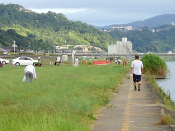 花火の翌日は、町内・土手・河川敷等の清掃日でありました(^.-)☆ --A--