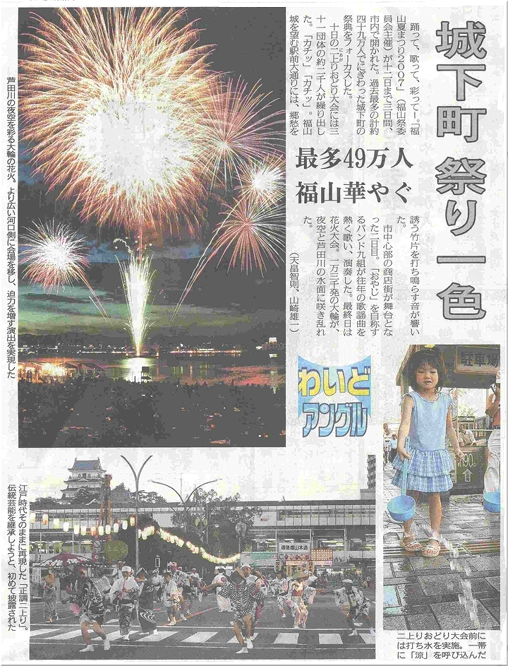今朝の中国新聞に“福山夏まつり”の記事掲載がありました。