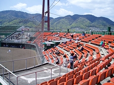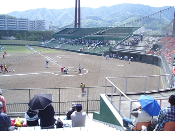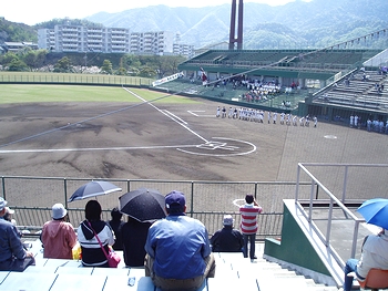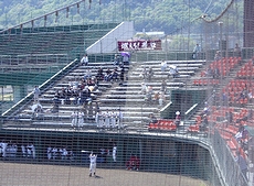 (左)一塁側に井口高校の応援団の皆様です(^.-)☆ (右)第二試合でも観客はご覧の通り少ないものでありました(^-^;