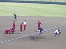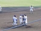 両チームともイィ試合展開の白熱したゲームでしたけど、福山工業の投手…最後に力尽きてしまいましたようですネ…