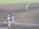 が、福山工業の投手…力尽きましたようですねぇ〜投手交代もありましたけど、9回に9点も加点されましては、もぅお手上げです(^-^;