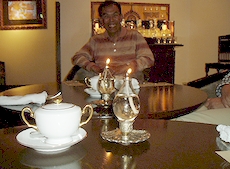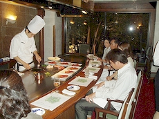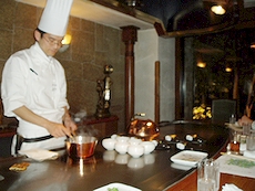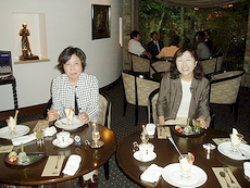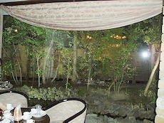 リッチなディナーが終わりますと、緑の木々に囲まれた別室にと移りユッタリと今度はティータイムです(^.-)☆