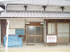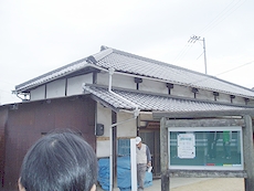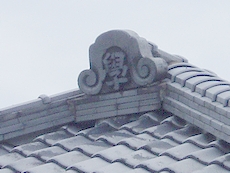 (右)小学校旧校舎:水呑小学校の校舎を移設した建物である。当時の瓦の紋が、そのまま残っている。