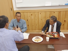10:25 ユウカセンターにて町内神輿をトラックから降ろし台車にて中村町内へ出発
