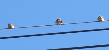 電線に沢山のスズメが止まりまして日向ぼっこ(^_^)v隙間もありませんほどビッシリと止まっている時もあれば、適当に等間隔で整然と止まっています時も…
