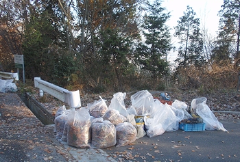 仕方ない事なのでしょうけどネ…まぁそのような事はさて置きまして、山頂での眺望を充分楽しみまして、また登り口の駐車場まで下りて来ますと、う〜ん、まだ数名の方々が駐車場で掃き掃除を続行でした。