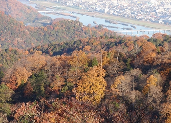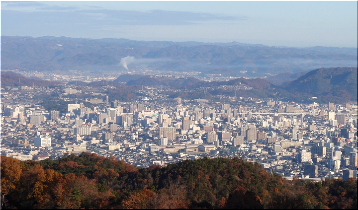 山頂周辺の木々が邪魔しませんと、実にイィ眺望なのですけど、今一、視界が良くありませんのが少し残念。こぅして我が家周辺を見つめていますと、以前は農地の中に点在していました住居も随分埋まって来ましたねぇ〜