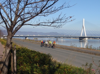 楽しそうには見えましても、結構ハードなんでしょうねぇ〜この方達の向こうの芦田川の河面では沢山のカモメが飛び交っています。