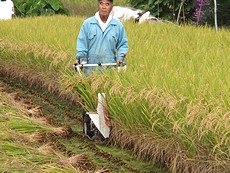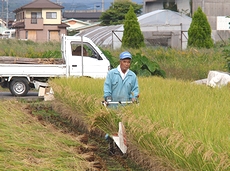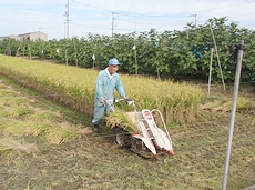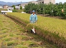 昔は手で稲を刈っておりましたけど、今ではこんな稲刈り機でスイスイと(^_^)v