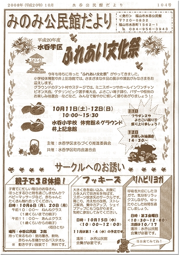 先日の10/11(土)〜10/12(日)の2日間は、『平成20年度水呑学区“ふれあい文化祭”』が開催されました(^.-)☆