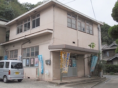 (左)力士“二本竹”の碑 (中)諏訪神社 (右)水呑漁協