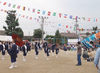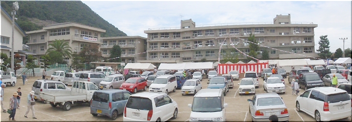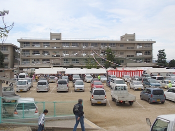 井上記念館・小学校体育館・小学校グランド…と三つの会場に分かれて、それぞれ盛況。