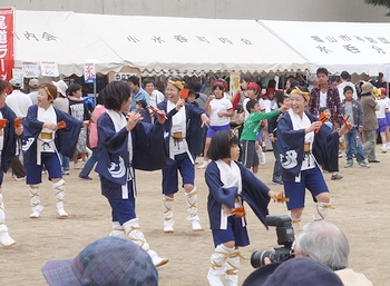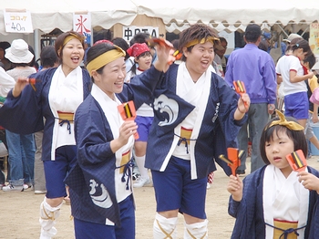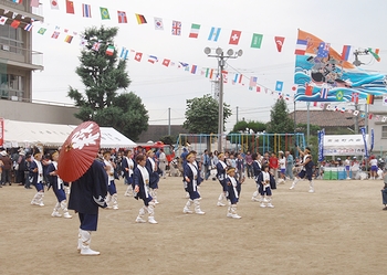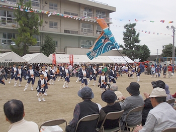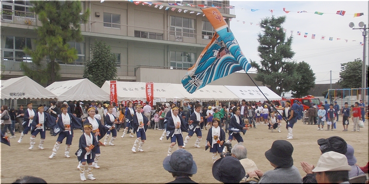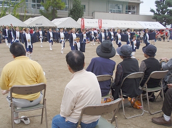 グランドでは、丁度「獅子団」の皆さんが、よさこい衣装で楽しそうに賑やかに踊っておられました。
