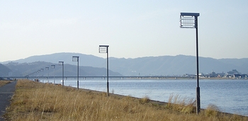 この為、芦田川の両側の河川敷にはこんな『電撃殺虫器』がズラッと並んでおります。