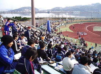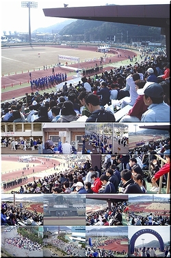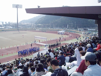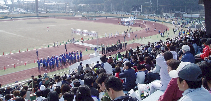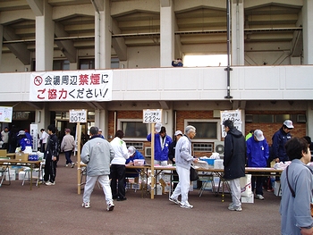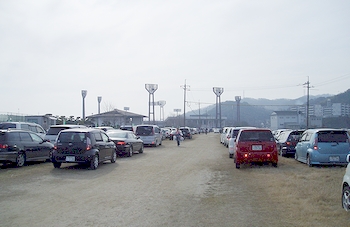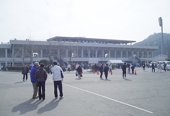 ノンビリと歩いて陸上競技場にと向かいますと、駐車場はほぼ満杯。