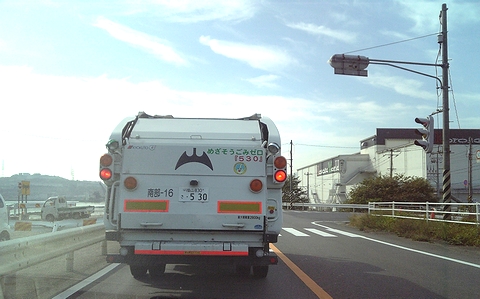 今まで何度かナンバープレート「530」のゴミ収集車を見掛けまして、その都度急いで携帯かデジカメを取り出しまして画像に納めようと試みたのですけど、その都度、構えました途端に左折か右折(^-^;
