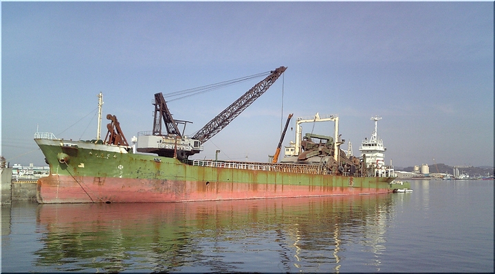 老朽激しいこの作業船…う〜ん、何処からヤッて来ましたのでしょうねぇ〜