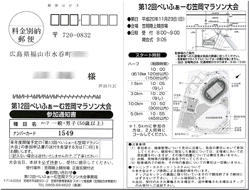 ところで、数日前になりますけど、「べいふぁーむ笠岡マラソン大会」の参加通知書が届いておりましたネ。