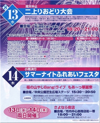 お盆と言いますと“福山夏まつり”が8/13〜8/15の3日間開催されますけど、昨日でしたか…一昨日でしたか…この案内の折り込みチラシが入っておりました。