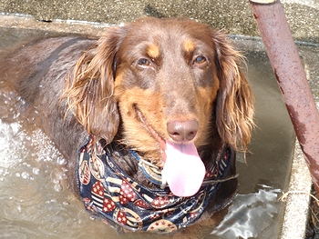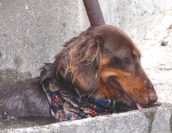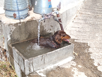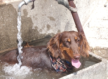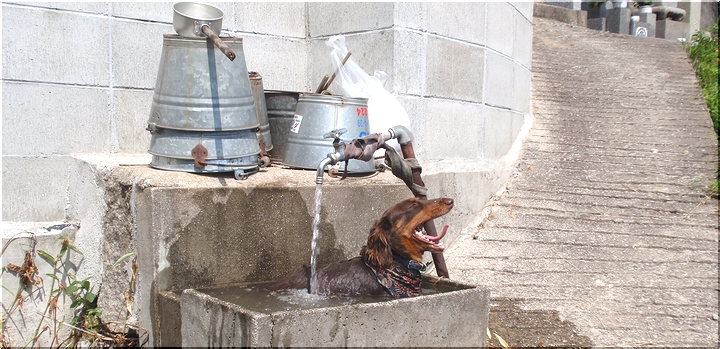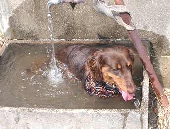 この水くみ場…ゴンchanにはよほど気持ちの良いお風呂かプールみたいな感じなのでしょうねぇ〜