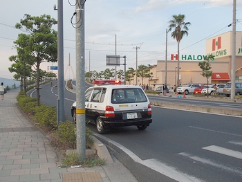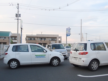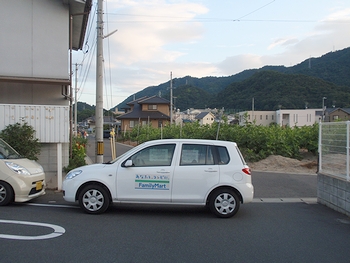 まずコンビニの駐車場を横切ろうとしますと、このコンビニの車が通り抜け可能な場所の出入り口にボンボンとファミリーマートsanの車を止められ、車輌の通り抜け禁止にしておられますから笑ってしまいます。