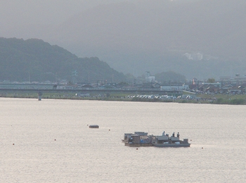 真正面よりも、もぅ少し上流方向がイィのですけど、帰路の混雑を考えますと、出来るだけ芦田川大橋に近い場所が面倒でありませんから(^-^)