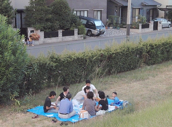 GONsanが陣取りました土手の下の河川敷は、ご覧の通りこの段階では1組のペアが座っておられるのみ(^-^)