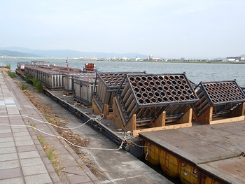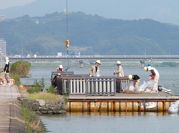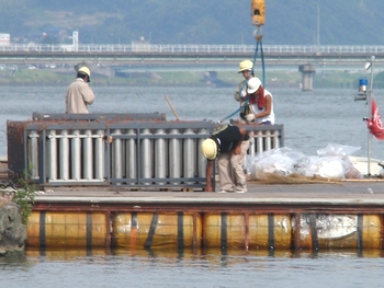 まだ邪魔にはならないだろぅ…と台船に上がり、筒の中を覗かせて頂きました。