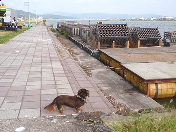 いつのまにかゴンchanも台船に上がって来まして、足元でワンッ!!