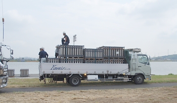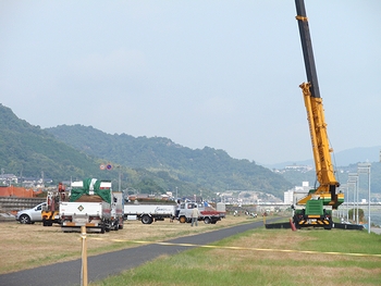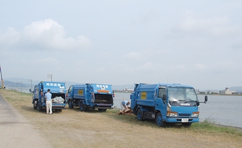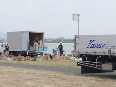 で、A.M.8:30頃から河川敷に出かけますと、今から後片付けを始めようか…と言った状況でした。