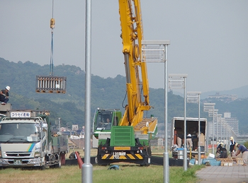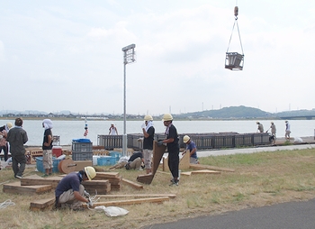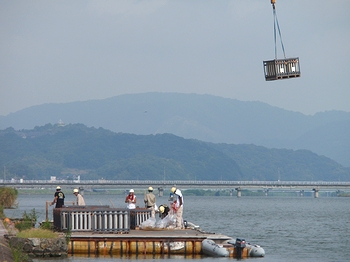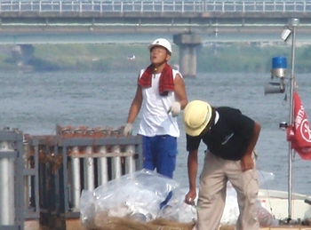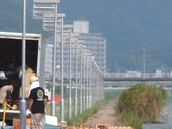 昨年は、河川敷のタイル張りの一部を、この後片付けの際に破損しておられましたけど、さて、今年はどぅでしょうネ(^-^)