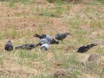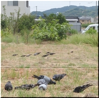 我が家前の畑の何でもない景観なんですけど、よくここにハトsan達が集まっていますのを見掛けます。