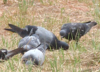 ★ ハトの主食は、雑草などの植物の種子です。もともと公園のハトは、西アジアの砂漠地帯のカワラバトという野生種を家禽化したもので、荒れ野に広く散らばった草の種を拾い集めてよく太ることから、食用に飼育されるようになったのです。今でも中近東では町の中に鳩の塔という禽舎があり、ここに群れで巣作りをさせて自由に外の荒れ野で草の種を食べさせておき、適宜よく太った雛を食用にしています。