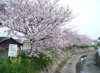 この集会場裏の水呑川の土手には10本程度のサクラが並んでおりますけど、これもほぼ満開状態で仲々華やかな景観を醸しておりました。