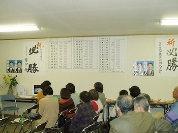 当確ラインの獲得票の確認が出来ました時点で、後援会長san等のご挨拶。