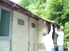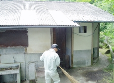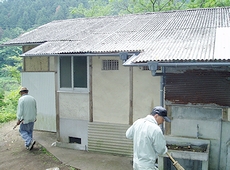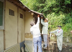 もぅ一週間前の事になりますけど、6/8(日)には早朝から八幡神社〜六方学園間に存在します“葛城神社”の屋根補修工事のお手伝いとなりました。
