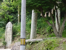 B現在地には、個人のお墓・地神・法界と並んで設置されており、これを右側に詰めて移動し法界さんの部分を空け公道とする