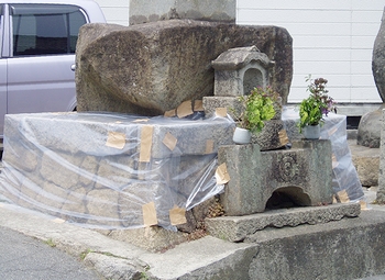 @法界さんを井上記念館の敷地内に移転(法界には“重顕寺”の記載がありますから、一宗教団体の遺跡を公共施設内に設置には市が難色)