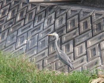そんな合間に、水呑川のお隣りの町内会との境界辺りで一服しますと、おっ、眼の前に1羽のシラサギが一休みしておりました。