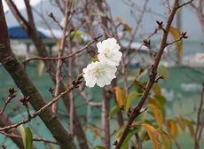 福山市神辺町上竹田の竹田川沿いに咲く十月桜が、見ごろとなっている。25本ほどが連なり、道行く人の目を楽しませている。彼岸桜の一種で、白とピンクの直径約3センチの花びらをつけている。春にも咲く。県緑化センターによると、夏の猛暑などの影響で、例年より咲くのが遅くなり、11月中旬まで観賞できる。
