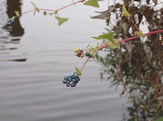 見た感じでは美味しそうにも見えませんけど、河面に向かって垂れ下がっていますから眼には止まります。