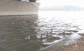橋の下では、相変わらず5羽のカモsan達がノンビリと浮かんでおりました。