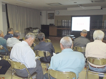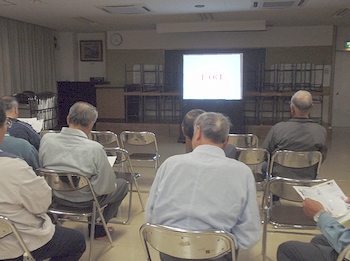 定刻10分前に公民館3階にと上がって行きますと、スクリーンを前に並べられました椅子が24席。