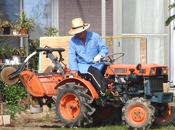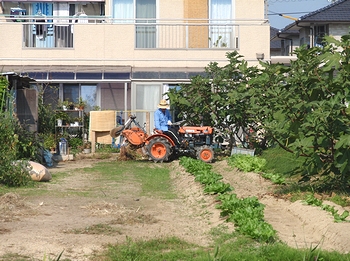 ふと、眼に入りましたのが、そんなに広く無さそうな畑で、少々大きめの耕耘機で耕しておられました高齢の男性。