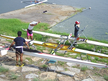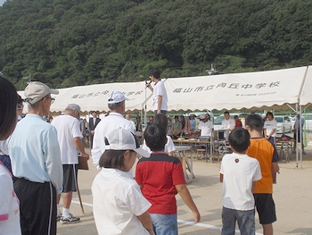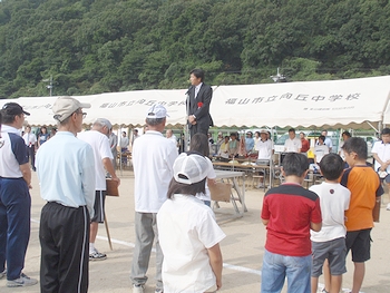 前日・土曜日に続いての準備で、A.M.8:00に向丘中学校グランドに集合。