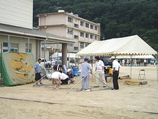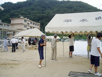9/6(土)のP.M.4:30より向丘中学校で開催の水呑学区民運動会の準備です。